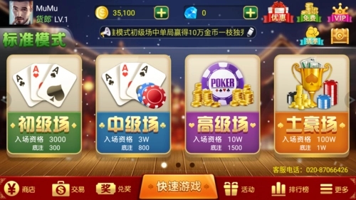 3.由闲家下注,可以选择1倍底注、2倍底注、5倍底注、10倍底注之中的一种进行下注。