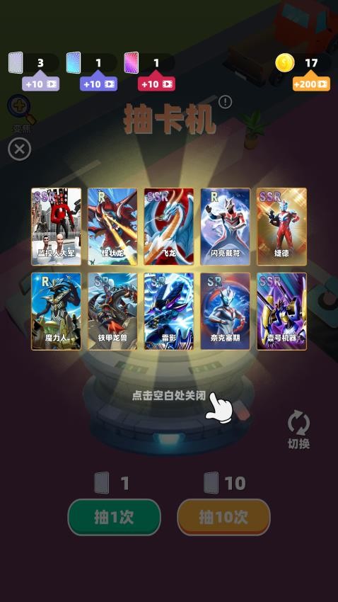 1、基础抽卡消耗金币或钻石获取随机卡牌。